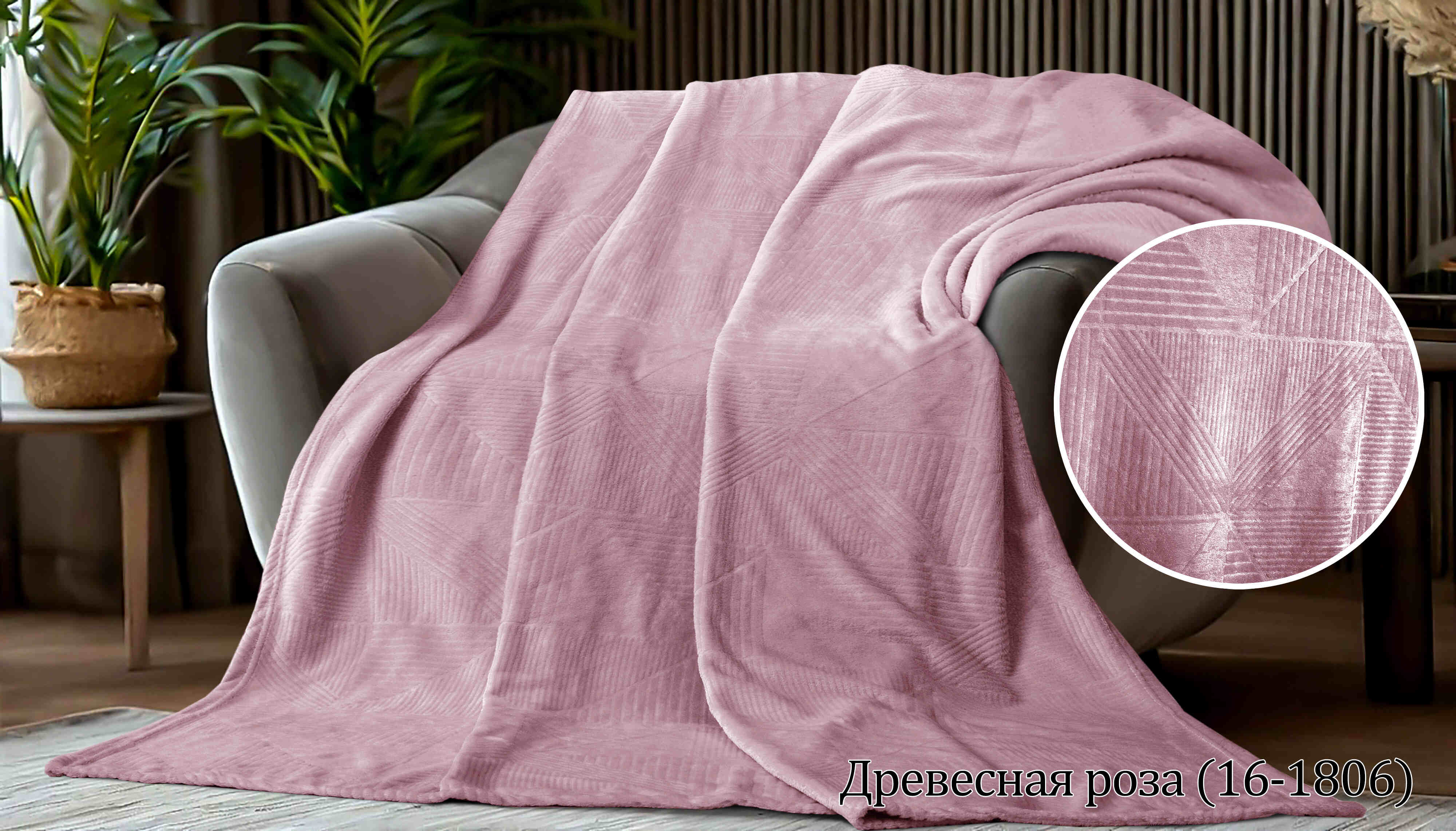 Плед изготовлен из качественной ткани велсофт, которая отличается мягкой бархатистой поверхностью, высокой износостойкостью и способностью хорошо удерживать тепло. Декоративный тисненый рисунок придаёт изделию аккуратный и премиальный внешний вид, сохраняя чёткость рельефа даже при длительной эксплуатации.